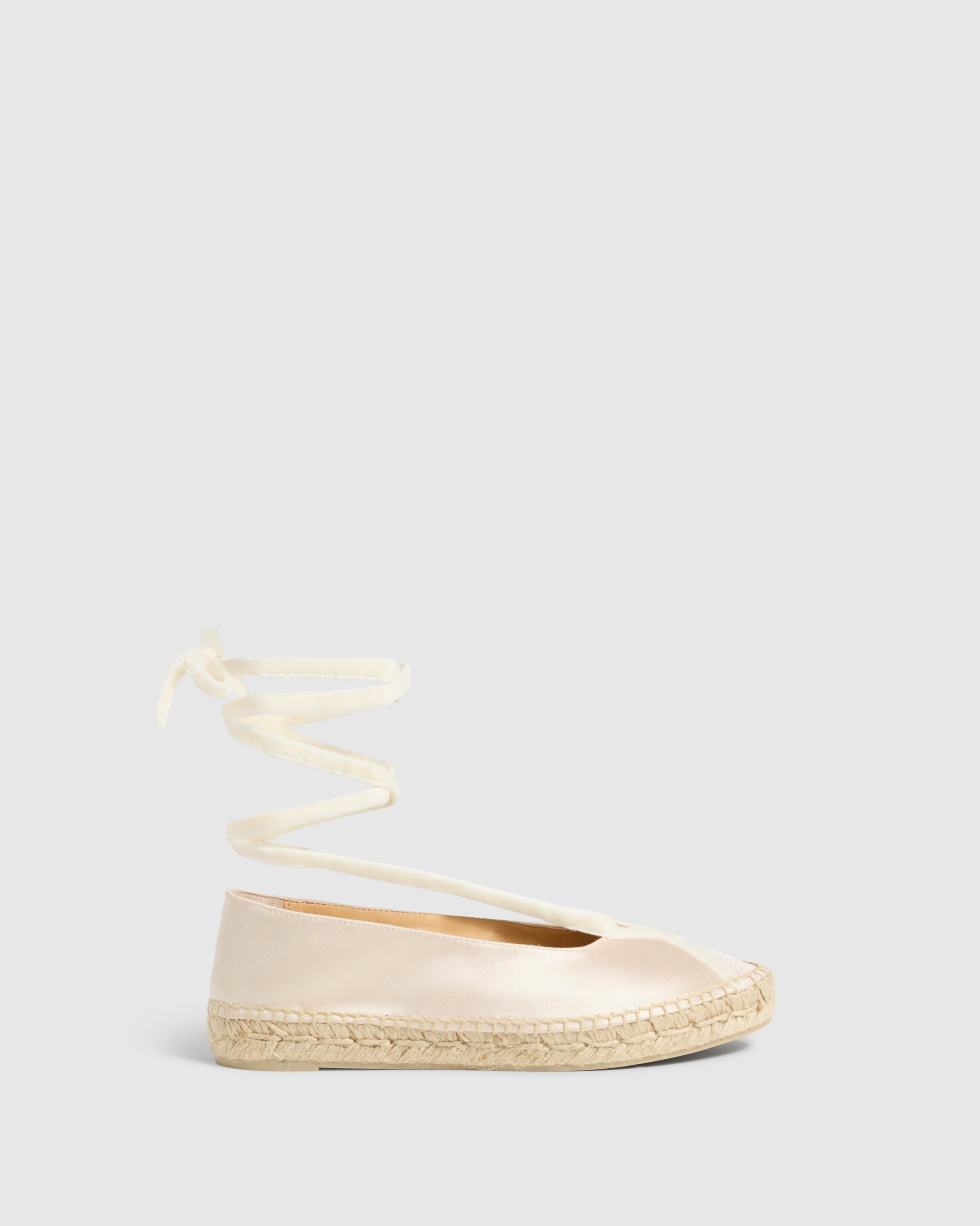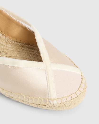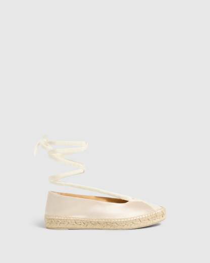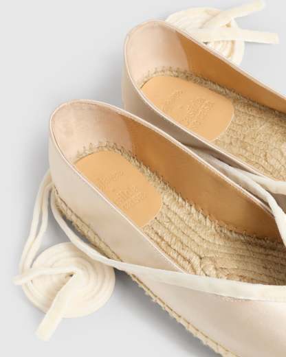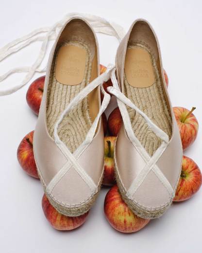 Diseñada por 'Casilda se casa' para Castañer, la alpargata Sancha tipo bailarina es el complemento ideal para celebraciones. Confeccionada en España en raso certificado, la alpargata Sancha está acabada en puntera redonda y cierre con lazada.