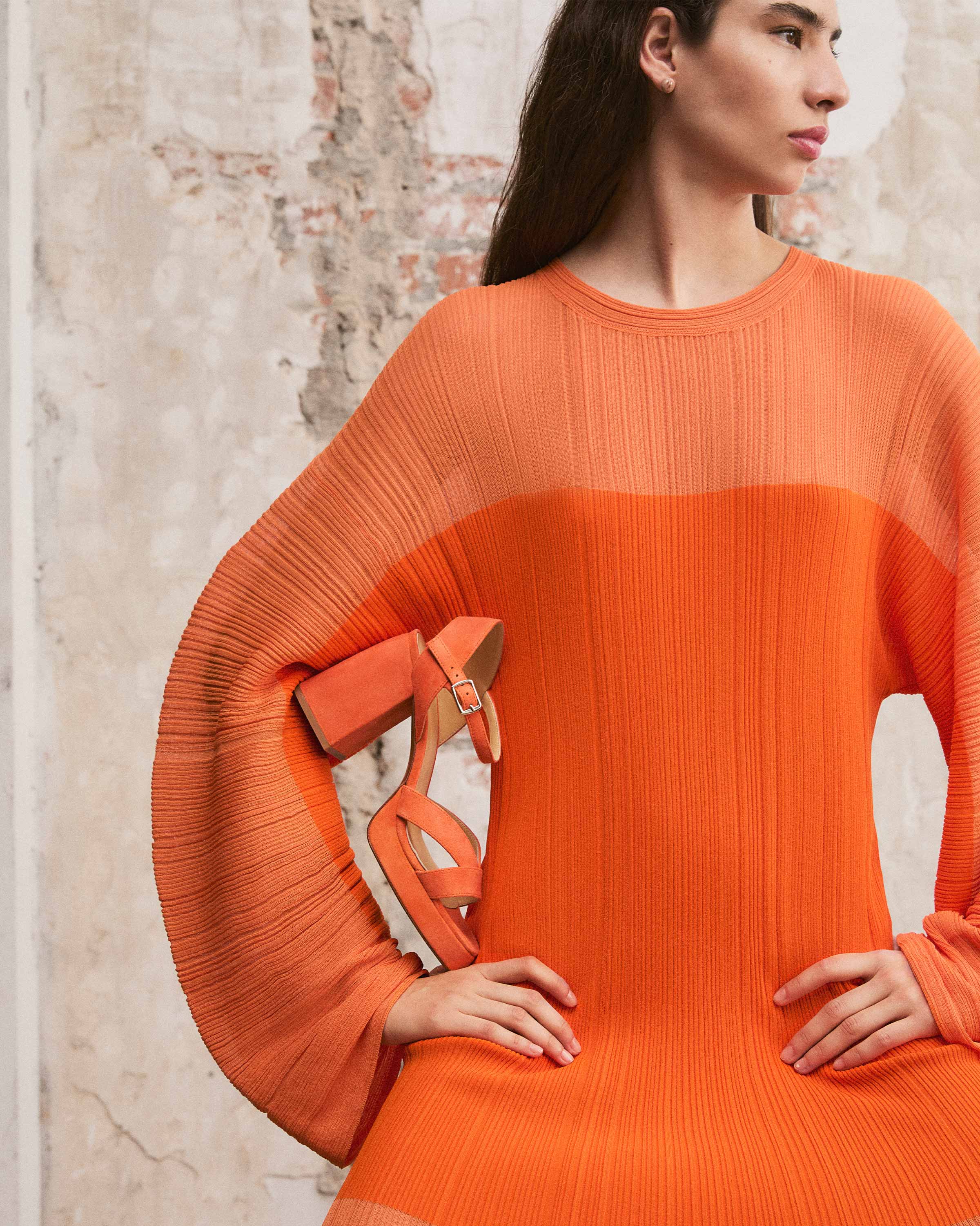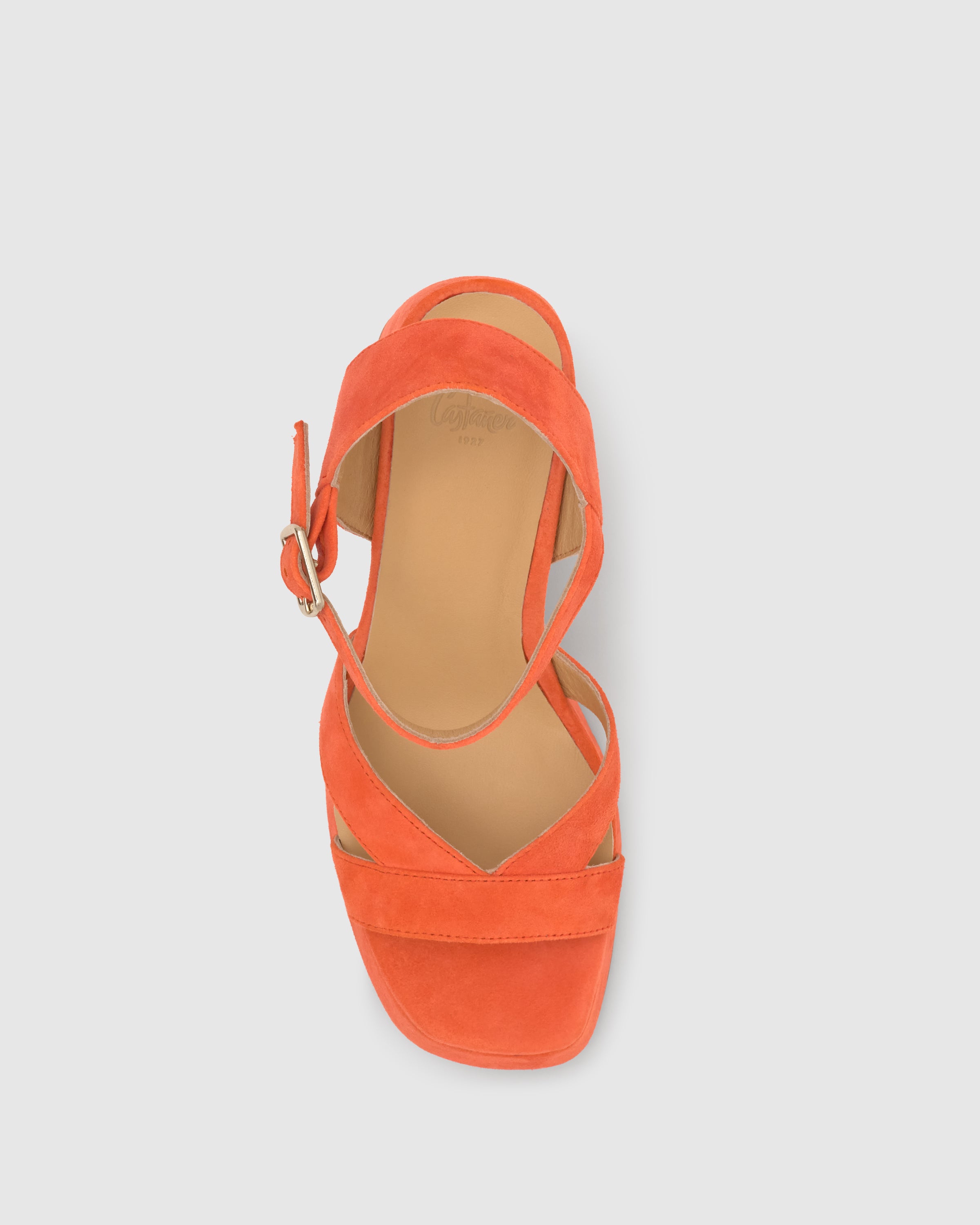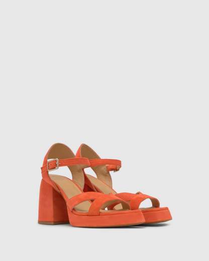 Sandalia Vero en ante con cierre de pulsera, plantilla acolchada, escote en V y tacón de 10cm forrado a juego.