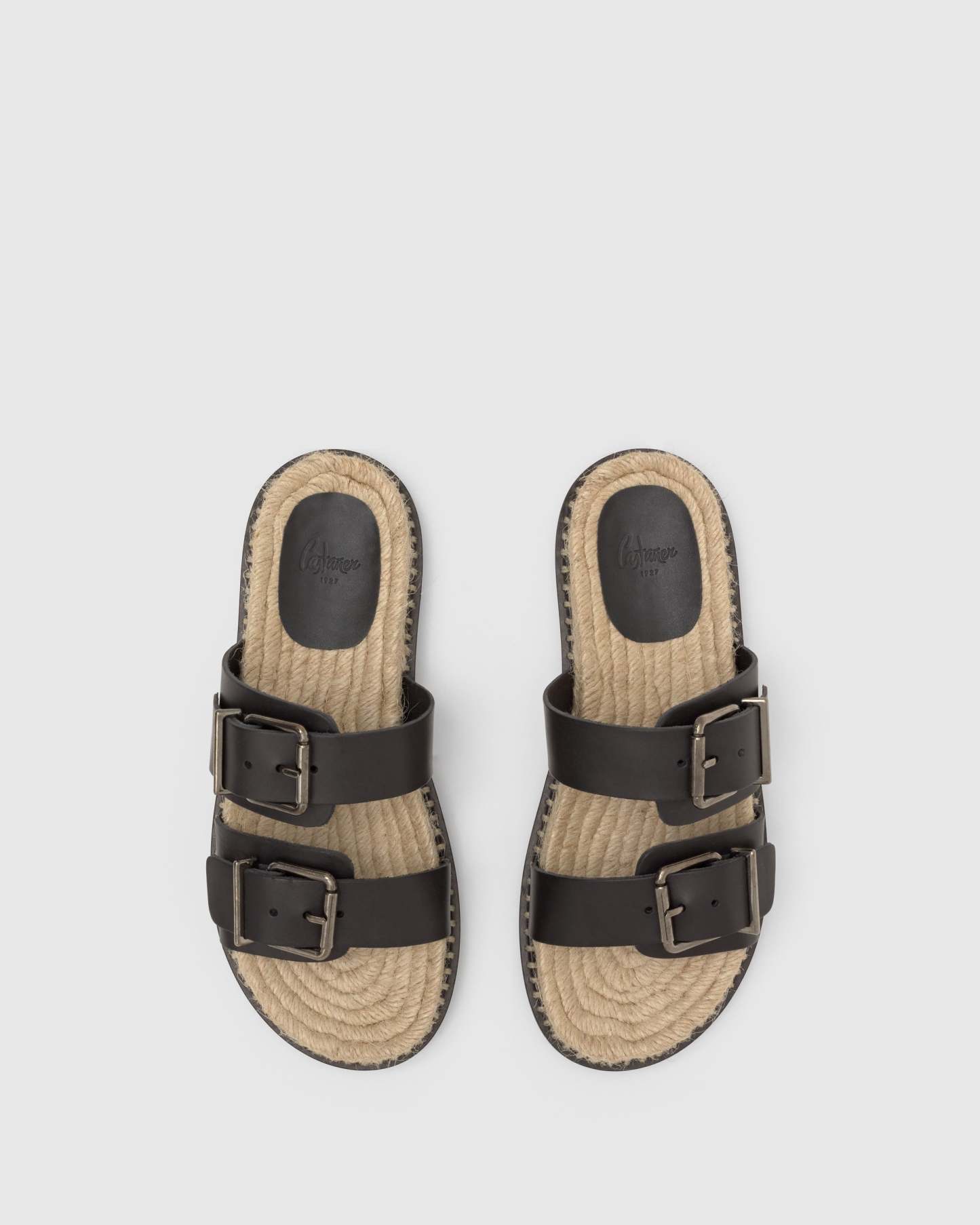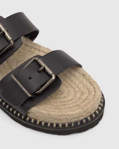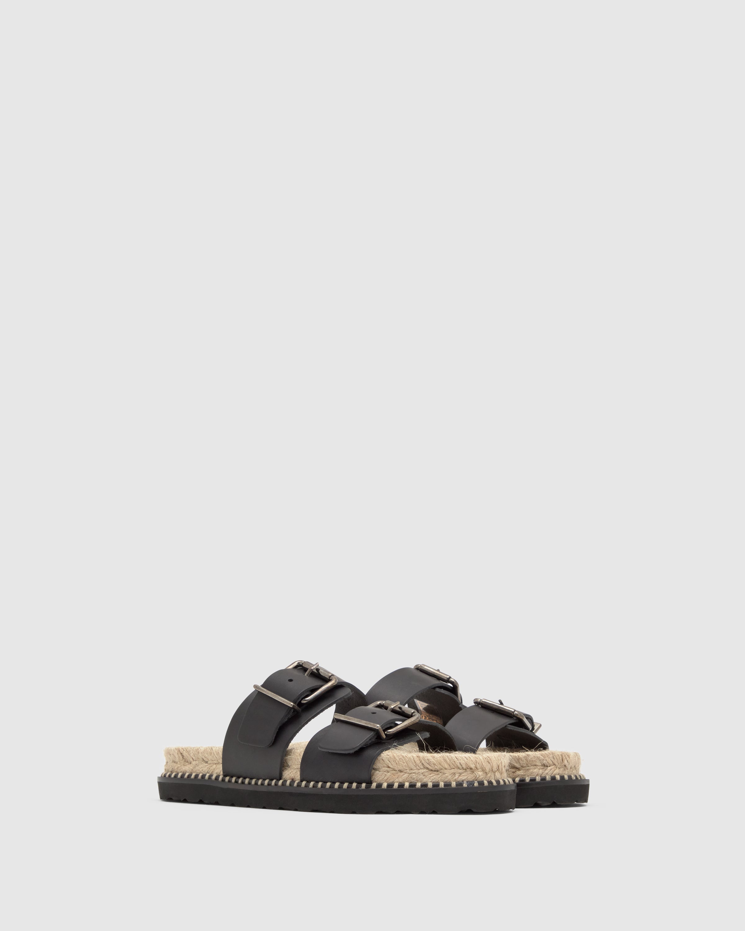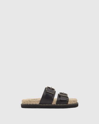 Sandalia slip-on Ter en vaqueta con hebillas ajustables y suela de yute con piso de goma.
