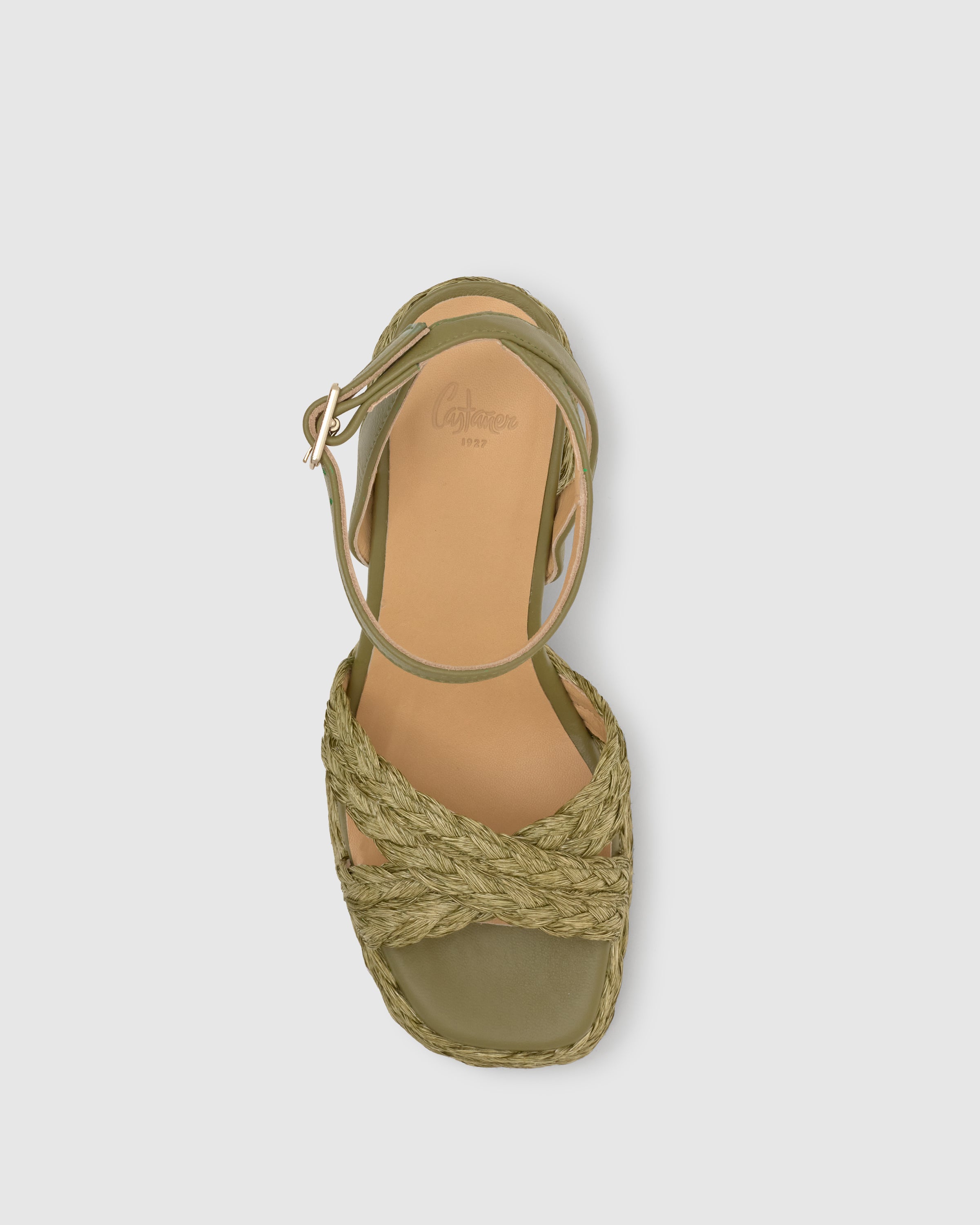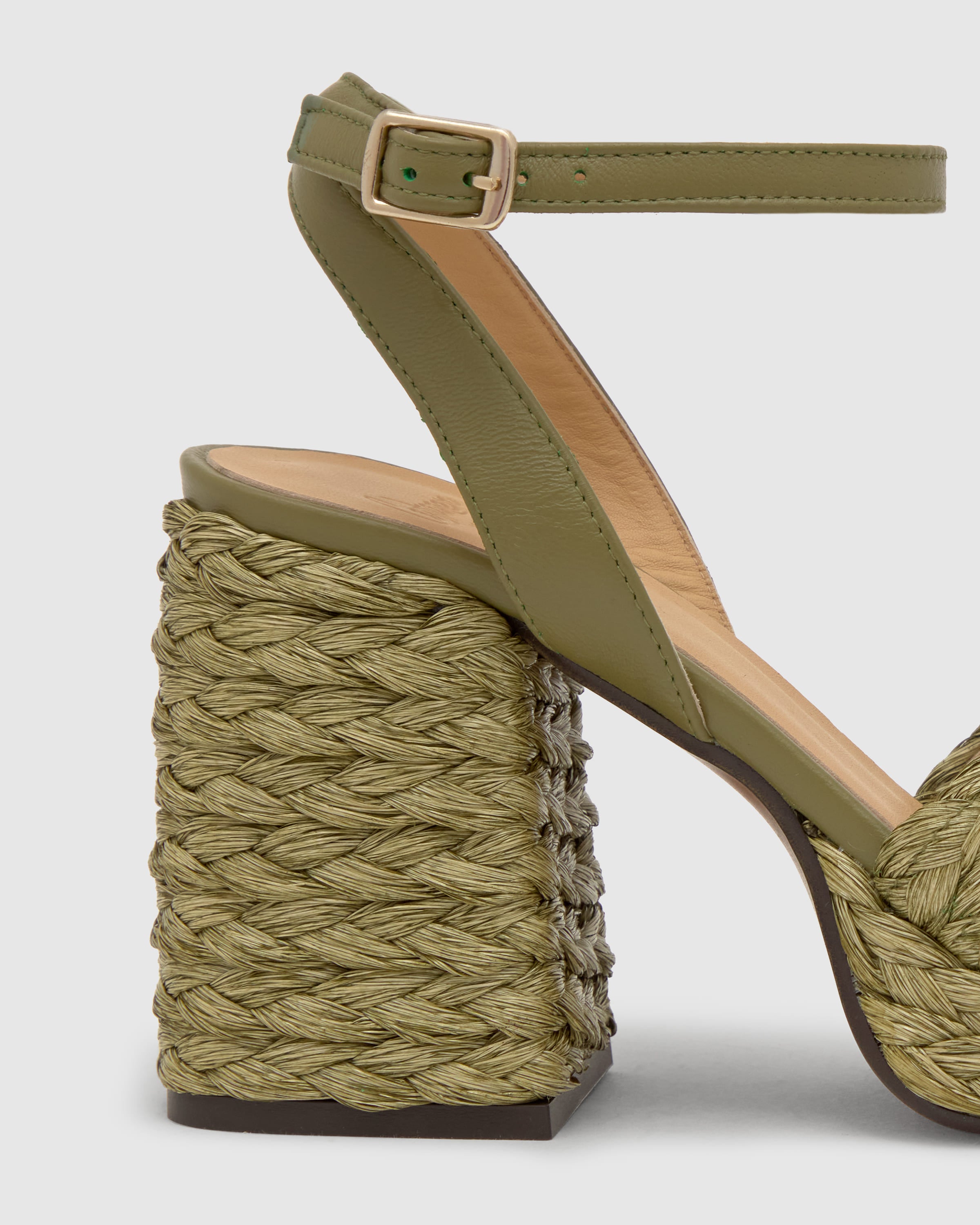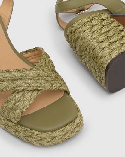 Sandalia Valeriette en rafia natural con cierre de pulsera, plantilla acolchada, escote en V y tacón de 10 cm forrado a juego.